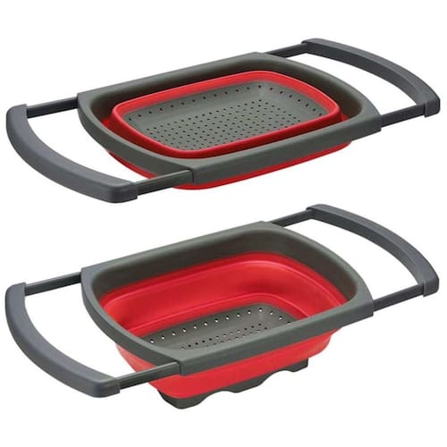 Escorredor ajustável retrátil em silicone, prático e útil, uma peça que faltava na sua cozinha.