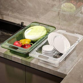 Escorredor Retrátil de Pia Ajustável Legumes Verduras Louça Escorredor Retrátil de Pia Ajustável Legumes Verduras Louça ===================================== Este escorredor de pia ajustável é prático e versátil, projetado para se adaptar perfeitamente ao tamanho da sua pia. Fácil de manusear e limpar, ele é ideal para garantir mais higiene e eficiência ao manipular alimentos. Com o design expansível, você pode lavar e escorrer frutas, verduras, legumes e outros itens diretamente na pia, evitando contaminações e mantendo a organização sem ocupar todo o espaço disponível ===================================== Contém: 01 Escorredor Especificações: - Material: Plástico - Medida Mínima: 36cm x 20cm x 8,5cm - Medida Máxima: 45cm x 20cm x 8,5cm - Retrátil - Peso: 460 gramas - Cor enviada de forma aleatória conforme disponibilidade em ===================================== Devido à diferença entre monitores e iluminação diferentes, pode haver variação na tonalidade apresentada no anúncio. Medidas muito aproximadas. Marca: Não Informado Ean: 6013400030472