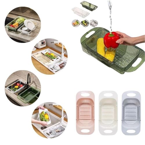 Escorredor Retrátil de Pia Ajustável Legumes Verduras Louça Escorredor Retrátil de Pia Ajustável Legumes Verduras Louça ===================================== Este escorredor de pia ajustável é prático e versátil, projetado para se adaptar perfeitamente ao tamanho da sua pia. Fácil de manusear e limpar, ele é ideal para garantir mais higiene e eficiência ao manipular alimentos. Com o design expansível, você pode lavar e escorrer frutas, verduras, legumes e outros itens diretamente na pia, evitando contaminações e mantendo a organização sem ocupar todo o espaço disponível ===================================== Contém: 01 Escorredor Especificações: - Material: Plástico - Medida Mínima: 36cm x 20cm x 8,5cm - Medida Máxima: 45cm x 20cm x 8,5cm - Retrátil - Peso: 460 gramas - Cor enviada de forma aleatória conforme disponibilidade em ===================================== Devido à diferença entre monitores e iluminação diferentes, pode haver variação na tonalidade apresentada no anúncio. Medidas muito aproximadas. Marca: Não Informado