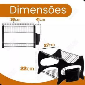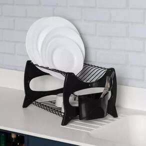 Características: - Cor: Preto - Dimensões: 21,5 x 26 x 36 cm - Peso Suportado: 4 kg - Material: Aço e Plástico resistente à ferrugem e desbotamento - Capacidade: até 13 pratos e inclui porta talheres.