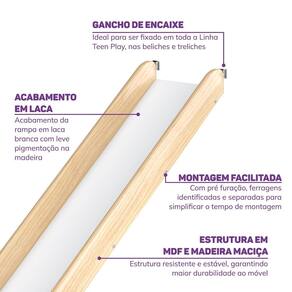 Escorregador para Beliche Teen Play para deixar o quarto do seu filho(a) muito mais legal e divertido e as noites de sono. Produto produzido em madeira maciça e mdf e pintura em laca branco lavado. Pura diversão para o quarto infantil do seu filho. Acabamento: Verniz Ambiente Principal: Quarto Infantil codigo_ean: 7900288185235 Complexidade da Montagem: Média: pode ser montado por mais de uma pessoa e/ou necessite de maior conhecimento para montagem Cor: Natural/Branco Cor do Produto: Natural/Branco Escala de Brilho: Semi-Brilho Itens Inclusos: 1 Escorregador, 1 kit ferragens e manual de montagem Manual de Montagem e Instalação: https://product-hub-prd.madeiramadeira.com.br/794109480/documents/88359d56-fa9e-4ebc-a0c9-77dbc06cdaaf301410340591750768179815.pdf Marca: Casatema Material Principal: Madeira Maciça Necessita Montagem: Sim Origem do Produto: Nacional Peso: 13 kg Recomendações de Uso, Manutenção e Limpeza: Na limpeza não utilizar produtos químicos e abrasivos, usar apenas com pano umedecido, para garantir a maior durabilidade do móvel. Sistema de Montagem: Parafuso