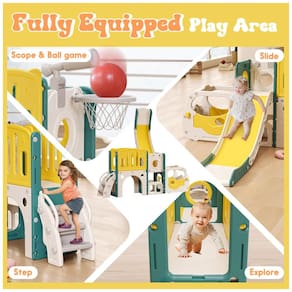 Playset Completo e Divertido: Inclui uma cesta de basquete com bola e um telescópio, despertando a curiosidade e criatividade da criança! Uma verdadeira estação de brincadeiras completa!