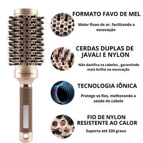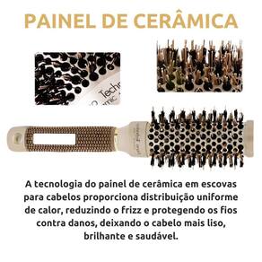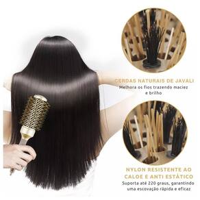 Escova mofashi 25mm nano technology ceramic ionic painel de ceramica Se você busca uma escova de cabelo para um resultado impecável, a escova térmica vazada de cerâmica com cerdas duplas de javali e nylon é a escolha ideal. Seu design inovador e materiais de alta qualidade garantem modelagem perfeita, proteção dos fios e secagem rápida, sendo a ferramenta ideal tanto para em salões quanto para o dia a dia. Com um corpo vazado em formato de favo de , essa escova proporciona melhor ventilação, permitindo que o ar quente do secador passe com mais eficiência pelos fios. Isso reduz o tempo de secagem e minimiza os danos causados pelo calor, deixando o cabelo mais saudável e brilhante. Além disso, sua tecnologia iônica ajuda a selar as cutículas do cabelo, eliminando o frizz e proporcionando um acabamento mais suave e sedoso. O revestimento cerâmico mantém o calor de forma uniforme, garantindo uma modelagem mais rápida e eficiente, sem sobreaquecer os fios. Principais benefícios da escova térmica : design vazado com formato de favo de - facilita a circulação de ar, reduzindo o tempo de secagem e protegendo os fios contra danos térmicos. Tecnologia iônica antifrizz - neutraliza a eletricidade estática do cabelo, deixando os fios mais alinhados, macios e brilhantes. Cerdas duplas de javali e nylon - as cerdas de javali distribuem melhor a oleosidade natural do couro cabeludo, deixando os cabelos hidratados e saudáveis, enquanto as de nylon ajudam a desembaraçar sem puxar ou quebrar os fios. Revestimento de cerâmica térmica - mantém e distribui o calor de forma uniforme, proporcionando uma modelagem duradoura e eficiente. Escova para todos os tipos de cabelo - ideal para cabelos lisos, ondulados, cacheados e crespos, garantindo resultados incríveis em qualquer textura. Leve e ergonômica - fácil de manusear, reduzindo o cansaço nas mãos e proporcionando maior conforto durante o uso. Perfeita para alisar, modelar e dar volume - versátil para criar desde fios lisos e polidos até ondas e cachos bem definidos. Por que escolher essa escova térmica Diferente das escovas comuns, essa escova térmica vazada de cerâmica foi desenvolvida com tecnologia de ponta para atender às necessidades de cabeleireiros e entusiastas da beleza. Seu design inteligente proporciona um manuseio confortável e um desempenho superior, garantindo um acabamento de salão no conforto da sua casa. Seja para um alisamento perfeito, uma modelagem volumosa ou ondas naturais, essa escova é a ferramenta ideal. O equilíbrio entre cerdas de javali e nylon permite que ela deslize suavemente pelos fios sem danificá-los, garantindo um penteado impecável e duradouro. Como usar para obter o melhor resultado 1 com os cabelos úmidos ou secos, aplique um protetor térmico para evitar danos pelo calor. 2 divida o cabelo em mechas e posicione a escova próxima à raiz. 3 utilize um secador direcionando o ar quente através da escova vazada para secagem mais rápida. 4 deslize a escova suavemente até as pontas, repetindo o processo até atingir o efeito desejado. 5 finalize com um jato de ar frio para fixar o penteado e dar ainda mais brilho aos fios. Quem pode usar essa escova