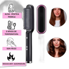 Escova 3 em 1 Alisadora Secadora Cabelo Liso 110/220v Bivolt Proteja seu cabelo O revestimento cerâmico nas cerdas da escova desempenha a dupla função de proteger o cabelo enquanto o molda e deixa-o liso e sem frizz em minutos. 1. Design anti-queimadura: nenhum dano à pele ou à cabeça. A temperatura interna deste pente é de até 200 graus, e a temperatura externa deste pente não é superior a 50 graus. Não tenha medo de queimar a cabeça, a pele ou o rosto. 3. Cuidados com os cabelos com íons negativos: nenhum dano ao seu cabelo, deixe seu cabelo naturalmente liso após o uso; 4. Aquecimento rápido em 30 segundos; 5. Fácil de usar: de um botão, fácil de operar; 6. 5 níveis de temperatura ajustável de 130 a 200 graus, escolha o nível certo para você como quiser; 7. Cabo giratório de 360 graus, não precisa se preocupar com a direção ao usar. 1. Alisamento de cabelo Aqueça primeiro, pegue uma mecha de cabelo com um pente alisador. Penteie o cabelo lentamente. Se você deseja obter o melhor resultado, repita o penteado várias vezes. Marca: Não Informado