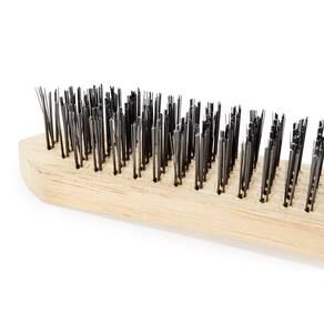 Escova de aço resistente, proporcionando durabilidade e eficácia na limpeza. Tamanho compacto de 6x15 cm, permitindo o uso em áreas estreitas e de difícil acesso. Cabo de madeira ergonômico, oferecendo conforto e aderência durante o uso. Cerdas de aço que garantem uma limpeza eficiente e remoção de sujeira incrustada.