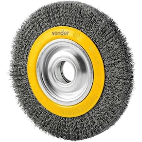 :: especificações técnicas: - material/acabamento das cerdas da escova: aço carbono/polido - tipo de cerdas da escova: ondulada - diâmetro: 8 - 203 mm Espessura: 30 mm - diâmetro do furo pol/mm : 1.1/4 - 31,5 mm - rotações por minuto rpm : 4.500/min