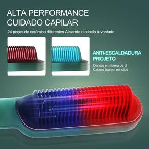 garantimos a devolução por arrependimento em até 7 dias, após o recebimento e garantia de 15 dias contra defeitos de fabricação. Descrição do produto: a escova alisadora de cabelos, foi especialmente desenvolvida para facilitar totalmente a sua vida, graças a sua tecnologia de alisar cada mecha do cabelo de maneira individual e ao mesmo tempo, sem causar danos aos fios, poupando seu tempo para que você possa aproveitar ainda mais o seu dia estando sempre arrumada, com os cabelos lisos e alinhados de forma rápida e prática, em menos de 20 minutos. 200c - adequado para cabelos resistentes grossos ou crespos 185c - adequado para cabelos ondulados e levemente cacheados 170c - adequado para cabelos escuros ou com tintura 155c - adequado para cabelos descoloridos, com química ou fragilizados 140c - adequado para cabelos danificados, finos ou fragilizados