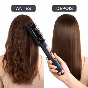 Perder tempo com chapinhas demoradas que queimam os dedos e deixam o cabelo sem vida é uma rotina cansativa.A Escova Alisadora Elétrica resolve esse problema ao unir a praticidade de pentear com o poder do alisamento térmico em um único movimento.Tecnologia Anti-Frizz: Reduz o volume e sela as cutículas para um brilho instantâneo.Bivolt Automático: Use em qualquer tomada de 127V ou 220V sem risco de danos ao aparelho.Cerdas com Revestimento Térmico: Protegem o couro cabeludo contra queimaduras enquanto você alisa desde a raiz.Aquecimento até 210°C: Alcance a temperatura ideal em poucos segundos para um resultado uniforme em todo o cabelo.Cabo Giratório 360°: Liberdade total de movimento sem fios enrolados durante o uso.Diferente das chapinhas convencionais que esmagam os fios, esta escova desliza suavemente, mantendo o movimento natural e a saúde da fibra capilar sem marcações.ESPECIFICAÇÕES TÉCNICASPotência: 40WFrequência: 60HzTensão: Bivolt Automático (110V - 220V)Temperatura Máxima: 210°CMaterial das Cerdas: Revestimento térmico protetorControle: Botões integrados com indicador de funcionamentoCONTEÚDO DA EMBALAGEM01 Escova Alisadora Elétrica Bivolt01 Manual de instruçõesAdicione praticidade à sua rotina matinal. Finalize sua compra agora e receba o produto em sua casa com toda a segurança e agilidade no transporte.PERGUNTAS FREQUENTES (SUPORTE TÉCNICO)1. Posso utilizar a escova com o cabelo molhado ou úmido?Não. Para garantir a segurança e a integridade dos fios, o cabelo deve estar completamente seco. O uso em cabelos úmidos pode causar efeito de "cozimento" da fibra capilar e danos térmicos severos.2. O produto é bivolt automático ou possui chave seletora?A escova é 100% Bivolt Automática. Ela identifica a voltagem da tomada (127V ou 220V) e ajusta a potência internamente sem necessidade de troca manual, evitando riscos de queima por voltagem errada.3. Como funciona o controle de temperatura e qual o limite?O aparelho atinge até 210°C. O ajuste é feito através dos botões no cabo ergonômico, permitindo que você adapte o calor conforme a espessura e sensibilidade do seu fio, do mais fino ao mais resistente.4. As cerdas podem queimar o couro cabeludo durante o uso?Não. O projeto conta com cerdas de revestimento térmico que atuam como uma barreira física. Elas permitem que você aproxime a escova da raiz para um alisamento completo sem que a placa de aquecimento toque diretamente a sua pele.5. O cabo da escova enrola durante o manuseio?Não, o modelo utiliza um Cabo Giratório 360°. Isso proporciona total liberdade de movimento e evita que o fio se enrosque ou sofra rompimentos internos, aumentando a durabilidade do produto.