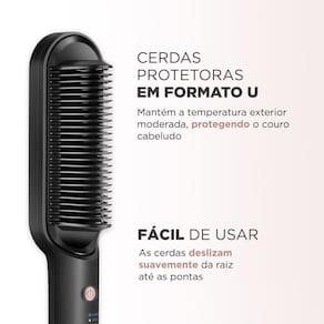CERDAS PROTETORAS EM FORMATO U Enquanto as placas de cerâmica no interior da escova aquecem até 230C, o formato das cerdas em U mantém a temperatura exterior moderada, garantindo mais proteção para o couro cabeludo.