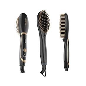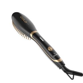 A escova alisadora Gold Ion é a solução para quem busca otimizar a rotina. No tamanho ideal para ser levada na bolsa. Suas cerdas possuem pontas protetoras que deslizam suavemente nos cabelos, sem danificar os fios. Atinge 220º, possui botão liga/desliga, distribuição homogênea de calor, cabo giratório e é Bivolt. As cerdas da escova alisadora Gold Ion são feitas com a exclusiva tecnologia Essential Oil, ativada com o calor do produto, que nesta versão traz o óleo de Argan, muito conhecido como o ouro líquido entre os profissionais cabeleireiros, é rico em ácidos graxos, ômega 9 e vitamina E, sendo assim um antioxidante poderoso, que promove hidratação e nutrição profunda para os fios, combate o envelhecimento e protege dos efeitos negativos do calor. Muito mais brilho e reconstrução para o seu cabelo. Já a tecnologia Antifrizz que também está presente na escova, é produzida pela emissão de íons negativos, responsável por manter a umidade natural dos fios ao mesmo tempo em que fecha a cutícula capilar; resultando em cabelos mais saudáveis, sedosos e com menos frizz.