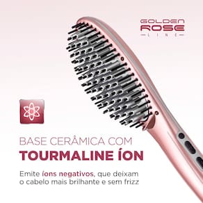 Indicada para qualquer tipo de cabelo, a Escova Golden Rose conta com controle de temperatura através do display LCD digital que permite o ajuste de 80°C a 230°C. Assim, você poderá escolher o que é melhor para suas madeixas de acordo com o resultado desejado, até mesmo para quem possui fios mais finos, frágeis e os quimicamente tratados.