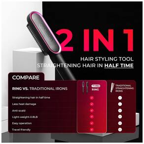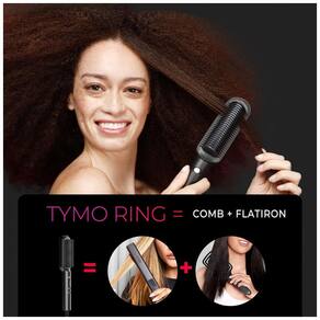 Escova Alisadora e Prancha em Um A escova alisadora TYMO RING combina a funcionalidade de um pente e de uma prancha alisadora em um único dispositivo, proporcionando cabelos super lisos e um efeito de escova com volume em uma única passagem. Com isso, a estilização do cabelo torna-se mais fácil e eficiente do que com uma prancha alisadora convencional.