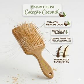 Escova Cabelo Marco Boni Coconut Fibra De Coco Desembarace Sustentabilidade e Eficiência em cada Escovação! A Escova de Cabelo Marco Boni Coleção Coconut une o cuidado com os seus fios ao respeito pelo meio ambiente. Desenvolvida com fibra de coco em sua composição, ela reduz significativamente o consumo de plástico, oferecendo uma alternativa mais consciente para sua rotina de beleza. Equipada com cerdas Nylon Pin, esta escova foi projetada para um desembarace fácil, rápido e sem esforço, sendo ideal para o uso diário em todos os tipos de cabelo. Principais Benefícios:Eco-Friendly: Composta por fibra de coco, reduzindo o impacto ambiental. Desembarace Suave: Cerdas de nylon que deslizam pelos fios sem quebrá-los. Versatilidade: Pode ser utilizada em cabelos secos ou úmidos. Uso Diário: Perfeita para todos os tipos de fios. Especificações Técnicas:Marca: Marco Boni. Linha: Coleção Coconut. Material: Fibra de coco, plástico, borracha e cerdas de nylon. Origem: Indústria Brasileira. Conteúdo: 1 unidade. Dicas de Cuidado:Para garantir a durabilidade da sua escova, recomendamos não utilizá-la com fontes de calor (secadores/chapinhas) e evitar o uso de sabão, detergente ou imersão prolongada em água. Garanta já a sua e sinta a diferença de um cabelo bem cuidado com consciência ambiental!
