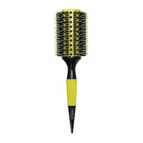 Escova redonda de madeira com base de cerâmica e cerdas naturais de javali intercaladas com pinos de nylon. A base de cerâmica retém o calor do secador por mais tempo, além de distribui-lo mais uniformemente. As cerdas e pinos proporcionam a tração ideal para cabelos mais volumosos e difíceis de penetrar. Ideal para alisamento de cabelos extra longos.