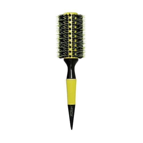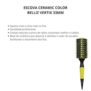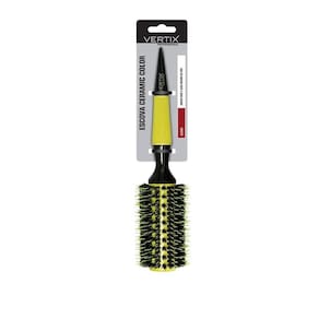 Escova redonda de madeira com base de cerâmica e cerdas naturais de javali intercaladas com pinos de nylon. A base de cerâmica retém o calor do secador por mais tempo, além de distribui-lo mais uniformemente. As cerdas e pinos proporcionam a tração ideal para cabelos mais volumosos e difíceis de penetrar. Ideal para alisamento de cabelos extra longos.