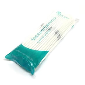 Escova cervical para coleta do material endocervical. Disponível em 100 unidades. Possui versão com ponta protegida, que evita lesões no colo uterino e aumenta ainda mais a segurança e eficiência da coleta.