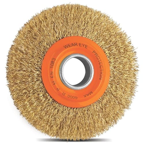 Escova Circular Arame Ondulado 6x1/2'' Tramontina Pro Tramontina Escova Circular Arame Ondulado 6x1/2 Tramontina PRO Tramontina - A linha de escovas da Tramontina PRO é utilizada para fazer a remoção de rebarbas, ferrugens, pinturas, carepas e respingos de solda, proporcionando acabamento em aços, madeiras, tubos e borrachas.OrientaçõesFilamentos em aço latonado temperados. Diâmetro do filamento de 0,3 mm. Adaptadores 1/2, 5/8 e 3/4. EN 1083. Utilizadas nas aplicações de remoção de rebarbas, ferrugem e pintura de nível leve em aços, madeira e borracha. Utilizadas em moto esmeril com rotação até 6000 rpm. As ferramentas são submetidas a testes de aplicação prática para garantir sua resistência mecânica em intenso. As ferramentas são produzidas e testadas conforme normas específicas.ObservaçõesUse óculos, luvas e outros equipamentos de proteção de acordo com a tarefa a ser executada. Armazene as escovas em local protegido de umidade, condensação, chuva, água, ácido ou outros líquidos agressivos e vapores que possam causar oxidação nos filamentos e partes metálicas das escovas. Tenha cuidado com a ponta dos arames, pois eles podem ferir o usuário. Nunca use escovas que apresentem defeitos. Não altere as características da escova. Use as escovas somente nas máquinas recomendadas. Nunca ultrapasse a rotação máxima da escova. Sempre que possível coloque o corpo de modo a evitar ser atingido pelas partículas projetadas durante a escovação. Não use roupas largas. O cabelo longo deve ser protegido por uma rede e capacete. Evite pressão excessiva da escova na peça. O excesso de pressão reduz a eficiência da escova e pode provocar na máquina. Proteja as mãos de todas as partes rotativas durante o processo de escovação. Armazene em local limpo e seco.Características GeraisEAN137891114158021DUN1417891114158028NCM9603.50.00Peso Líquido0,3000 kg.Peso Bruto0,3800 kg.Metragem0,001388 m.Dimensões Embalagem (Compr. X Larg. X Alt.)250x 185x 30 mm.Dimensões Produto (Compr. X Larg. X Alt.)150x 13x 150 mm.Dimensão Extra A150,0 mm.Dimensão Extra B12,7 mm.Dimensão Extra C32,0 mm. Características Gerais do Produto: Garantia: - 1 Ano