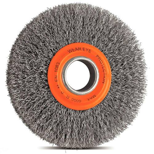A linha de escovas da Tramontina PRO é utilizada para fazer a remoção de rebarbas, ferrugens, pinturas, carepas e respingos de solda, proporcionando acabamento em aços, madeiras, tubos e borrachas. Orientações Filamentos em aço latonado temperados.Diâmetro do filamento de 0,3 mm.Adaptadores 1/2", 5/8" e 3/4".EN 1083.Utilizadas nas aplicações de remoção de rebarbas, ferrugem e pintura de nível leve em aços, madeira e borracha.Utilizadas em moto esmeril com rotação até 6000 rpm.As ferramentas são submetidas a testes de aplicação prática para garantir sua resistência mecânica em uso intenso. As ferramentas são produzidas e testadas conforme normas específicas. Características Gerais EAN13 7891114158069 DUN14 17891114158066 NCM 9603.50.00 Peso Líquido 0,4000 kg. Peso Bruto 0,4800 kg. Metragem 0,001388 m³. Dimensões Embalagem (Compr. X Larg. X Alt.) 250x 185x 30 mm. Dimensões Produto (Compr. X Larg. X Alt.) 150x 19x 31 mm. Dimensão Extra A 150,0 mm. Dimensão Extra B 19,0 mm. Dimensão Extra C 31,7 mm. Observações Use óculos, luvas e outros equipamentos de proteção de acordo com a tarefa a ser executada. Armazene as escovas em local protegido de umidade, condensação, chuva, água, ácido ou outros líquidos agressivos e vapores que possam causar oxidação nos filamentos e partes metálicas das escovas. Tenha cuidado com a ponta dos arames, pois eles podem ferir o usuário. Nunca use escovas que apresentem defeitos. Não altere as características da escova. Use as escovas somente nas máquinas recomendadas. Nunca ultrapasse a rotação máxima da escova. Sempre que possível coloque o corpo de modo a evitar ser atingido pelas partículas projetadas durante a escovação. Não use roupas largas. O cabelo longo deve ser protegido por uma rede e capacete. Evite pressão excessiva da escova na peça. O excesso de pressão reduz a eficiência da escova e pode provocar avarias na máquina. Proteja as mãos de todas as partes rotativas durante o processo de escovação. Armazene em local limpo e seco.