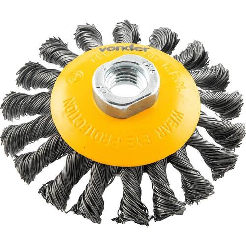 Conteúdo Embalagem:1 Escova circular cônicaDestaques e diferenciais: Possui formato cônico proporcionando praticidade na operação e aço torcido garantindo maior poder de remoçãoAplicações e dicas de uso:Indicada para limpeza de peças em geral. Utilizada em esmerilhadeira angular.Características Técnicas:Material/acabamento das cerdas da escova: Aço carbono/polido Tipo de cerdas da escova: Torcida Diâmetro externo da escova pol : 4.0/0 Espessura da escova pol : 0.1/2 Diâmetro da rosca da escova : M-14 Rotação máxima rpm : 12500 /minGarantia: legal: 90 dias Marca: Não Informado Ean: 7893946564117