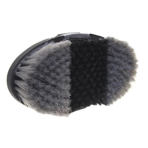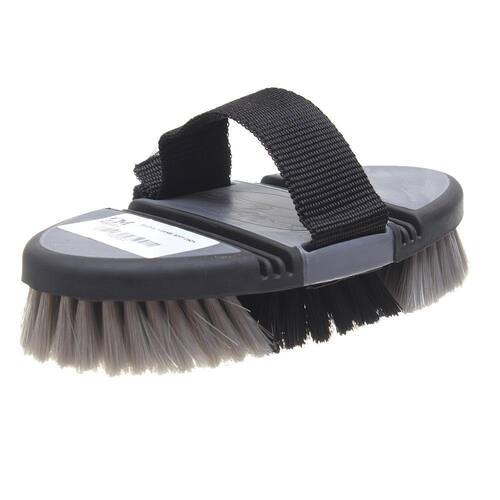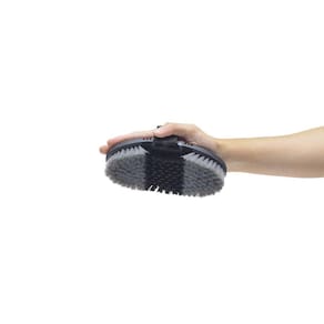 Escova na qualidade M Reis, fabricada com cerdas de nylon macias de 2,5cm e correia de nylon com regulagem. Este modelo é flexível que se ajusta às curvas do animal, facilitando a ação e proporcionando maior conforto.