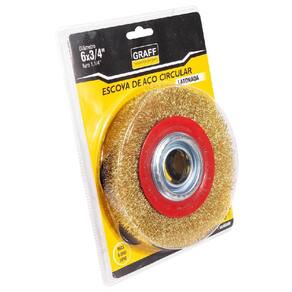 Marca: Graff Vantage A escova de aço circular é a mais comum para uso em moto esmeril e equipamentos elétricos. Ela existe em vários tamanhos, pra ser encaixada em furadeiras, esmerilhadeiras e lixadeiras, e serve tanto pra limpeza como pra remoção de ferrugens, vernizes e tintas. Marca: Não Informado Ean: 7908745603476