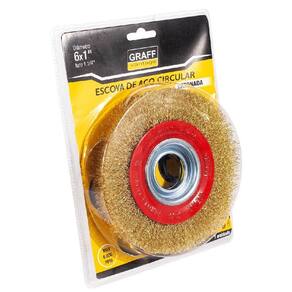 Marca: Graff Vantage A escova de aço circular é a mais comum para uso em moto esmeril e equipamentos elétricos. Ela existe em vários tamanhos, pra ser encaixada em furadeiras, esmerilhadeiras e lixadeiras, e serve tanto pra limpeza como pra remoção de ferrugens, vernizes e tintas. Marca: Não Informado