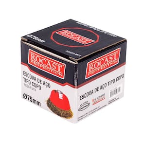 A Escova de Aço Latonado Tipo Copo 75mm 319,0029 - Rocast, é utilizada com equipamentos pneumáticos ou elétricos de alta rotação, sua principal utilização é na preparação de superfícies metálicas para pintura; as escovas tipo copo são largamente utilizadas na construção naval, na reforma de tanques de armazenamento, remoção de tintas de superfícies planas e ferrugem.