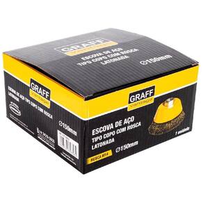 Escova De Aço Latonado Tipo Copo Com Rosca 571,0016 - Graff A Escova de Aço Latonado tipo Copo com Rosca é Utilizado para limpar suavemente superfícies de metal, ferrugem e sujeira. E serve tanto pra limpeza como pra remoção de ferrugens, vernizes e tintas. Sendo mais flexível que as outras e também serve pra polir, lixar e eliminar tintas e ferragens. Aplicação: Metais em geral. Espessura do fio de aço latonado: 0,30mm - Especificações técnicas: Dimensões do produto: 86x160x160 mm Peso: 0,794g Rosca: M14 Medidas mm : 150 RPM: 6.500 Referência: 571,0016 Marca: Graff Vantage A Escova de Aço Latonado tipo Copo com Rosca é Utilizado para limpar suavemente superfícies de metal, ferrugem e sujeira. E serve tanto pra limpeza como pra remoção de ferrugens, vernizes e tintas. Sendo mais flexível que as outras e também serve pra polir, lixar e eliminar tintas e ferragens. Marca: Não Informado Ean: 7908745603582