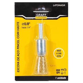 Escova De Aço Latonado Tipo Pincel Com Haste 571,0011 Graff A Escova de Aço Latonado Tipo Pincel destaca-se como uma ferramenta especializada para diversas aplicações. Projetada para remoção eficaz de rebarbas, ferrugem e pintura em nível leve, oferece versatilidade em trabalhos com aços, madeira e borracha. Compatível com furadeiras ou micro retíficas, proporciona resultados precisos e eficientes.