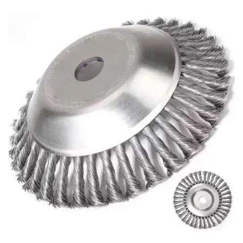 Escova de aço carbono tipo copo com fios torcidos. A mesma de sucesso dos vídeos dos eua. Produto revolucionário economia, pois a escova dura muito limpa telhado, cantos, superfícies dificeis, mato grande todos tipos de piso. Acessório forte e duravél vale o investimento facilita sua vida. Diâmetro 200mmfuro centrl uma polegada adaptavel em rocadeiras stihl, husqvarna,kawashima, siga, sa , makita, nagano, kawasaki, dakk, oregon, mitsubish,garthen, tramontina, karcher, echo, branco, toyama, trapp, motomil, tecna..