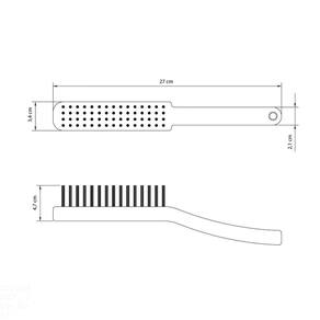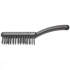 Já pensou em ter uma escova com maior durabilidade? Então, a Escova de Aço Tramontina com Base Plástica e 5 Fileiras de Cerdas em Aço Especial é a ideal para você. A ferramenta possui uma base injetada em plástico facilitando a movimentação do aparelho. Além disso, ela oferece mais resistência na escovação por ter 5 fileiras com as cerdas em aço especial. Orientações Base injetada.Cerdas produzidas em aço especial temperado.As ferramentas são submetidas a testes de aplicação prática para garantir sua resistência mecânica em uso intenso.Utilizada em trabalhos de limpeza de superfícies em geralAs ferramentas são produzidas e testadas conforme normas específicas. Características Gerais EAN13 7891114094305 DUN14 17891114094302 NCM 9603.90.00 Peso Líquido 0,1300 kg. Peso Bruto 0,1500 kg. Metragem 0,000473 m³. Dimensões Embalagem (Compr. X Larg. X Alt.) 270x 35x 50 mm. Dimensões Produto (Compr. X Larg. X Alt.) 270x 34x 47 mm. Cor 1 000000 Hexa Dimensão Extra A 21,0 mm. Dimensão Extra B 270,0 mm. Dimensão Extra C 34,0 mm. Dimensão Extra D 47,0 mm. Observações Use óculos, luvas e outros equipamentos de proteção de acordo com a tarefa a ser executada. Tenha cuidado com a ponta dos arames, pois eles podem ferir o usuário. Armazene em local limpo e seco.