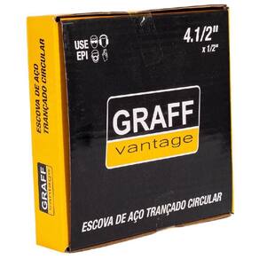 Marca: Graff Vantage Escova de aço circular trançado proporciona escovação mais agressiva. Utilizada em esmerilhadeira, sua principal característica é o uso em trabalhos mais pesados, já que a disposição trançada confere mais resistência aos arames de aço. Setores como o siderúrgico, metalúrgico, automobilístico, eletrônico estão entre os que mais utilizam a escova circular aço trançado. Marca: Não Informado