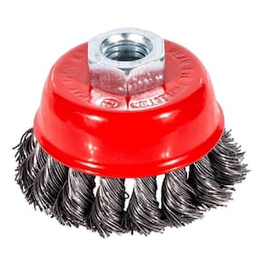 Escova de Aço Trançado Tipo Copo Com Rosca Circular utilizado para limpar duramente superfícies de metal de ferrugem e sujeira e também para limpar junteiras de soldagem.