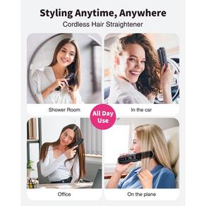 Escova alisadora de cabelo sem fio – pente de alisamento portátil para viagens – Aquecimento rápido dos anos 30, recarregável com USB-C duplo de 10.000 mAh, 300 milhões de íons negativos mais suaves, - Escova de alisamento sem fio atualizada: estilize a qualquer hora, em qualquer lugar, para uma beleza confiante durante todo o dia. A escova de alisamento Bopcal apresenta o mais recente design sem fio, liberando você do incômodo de procurar tomadas e lidar com fios emaranhados. Pesando apenas 300 g, esta escova alisadora leve e portátil é fácil de transportar, tornando-a sua companhia de estilo perfeita para o escritório, passeios, viagens e vida cotidiana. - Duas semanas de estilo com uma carga: o alisador de cabelo sem fio Bopcal possui uma bateria de 10.000 mAh, 200% maior do que outros modelos sem fio, com uma velocidade de carregamento 70% mais rápida. Aproveite até 120 minutos de uso com uma carga completa, aquecendo em apenas 30 segundos com carregamento rápido tipo C. Seu modo inovador de alimentação dupla permite que você o use enquanto estiver conectado quando a bateria estiver fraca, proporcionando uma experiência de estilo conveniente. - Suave e nutritivo, abrace o brilho elegante: o alisador de cabelo sem fio libera até 300 milhões de íons negativos, neutralizando a estática e domando o frizz. Seu revestimento protetor retém a umidade e reduz o atrito em 80%, permitindo que deslize sem esforço sobre o cabelo sem puxar, minimizando danos e melhorando o brilho. - 9 configurações de temperatura, sem limites para tipos de cabelo: a escova alisadora Bopcal Cordless oferece 6 opções de temperatura extras do que outras, expandindo a faixa de temperatura para atender às diversas necessidades de cabelos finos a grossos. Seja para crianças ou mães, todos podem encontrar a configuração de temperatura mais adequada. Ele também possui uma função de memória para estilo rápido e um visor LCD transparente para facilitar o uso. - Características de segurança: o chip de controle de temperatura inteligente evita o superaquecimento, enquanto um desligamento automático de 30 minutos garante tranquilidade. As cerdas antiqueimaduras elevadas fornecem proteção extra para o couro cabeludo, tornando-as adequadas para toda a família. A trava de segurança do modo de voo melhora a portabilidade - Uma ideia de presente cuidadosamente escolhida: o alisador de cabelo sem fio Bocpal vem com uma bolsa de armazenamento para facilitar a organização e portabilidade, o que o torna a escolha ideal para filhas, mães, amigas e esposas. Seja para o Dia das Mães, Dia dos Namorados ou aniversário, este presente transmite sentimentos calorosos, permitindo que ela tenha cabelos elegantes e brilhantes a qualquer hora, em qualquer lugar. (O produto não vem com um adaptador, que precisa ser comprado separadamente)