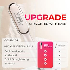 A escova alisadora TYMO RING combina um pente e um modelador de cabelo liso em um para proporcionar penteados super lisos em uma única passagem, tornando o penteado mais fácil e eficiente do que um alisador de cabelo com chapinha.