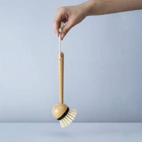 Escova de Bambu Oikos Redonda com Cabo para Limpeza Preta