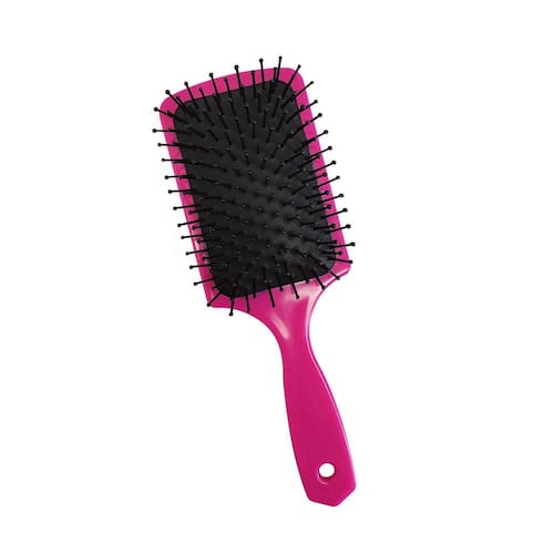 Escova Almofadada Raquete Salles ProEscova tipo raquete retangular almofadada em borracha macia e pontas protetoras, que massageiam o couro cabeludo, ajudando a controlar o volume e combater o frizz. Ideal para desembaraçar os cabelos curtos ou longos e alinhar o mesmo para um processo de escovação ou prancha.Tamanho do produto CxLxA: 23 x 7 x 3 cmCores: Rosa e Preto