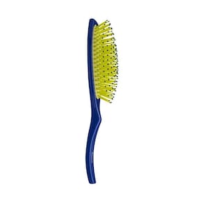 A escova Oval Blue é ideal para desembaraçar todos os tipos de cabelo. A base almofadada proporciona mais conforto ao usar e as cerdas massageiam o couro cabeludo.