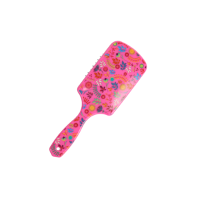 A Escova Quadrada Almofadada é ótima para pentear e desembaraçar cabelos lisos e ondulados. Massageia o couro cabeludo, pois sua almofada se molda ao mesmo. Possui decoração no verso do cabo.