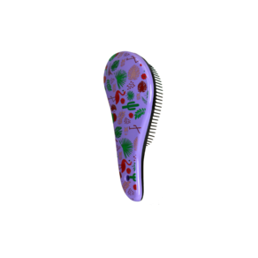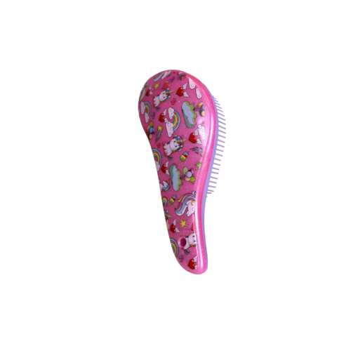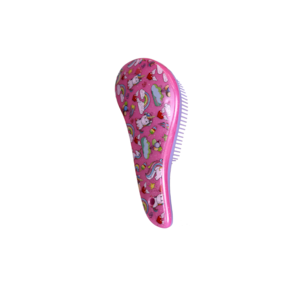 Escova funcional, desenvolvida em resina plástica, indicada para todos os tipos de cabelo, até os mais finos e frágeis, incluindo cabelos afro e cacheados. Com decorações variadas no verso da escova.