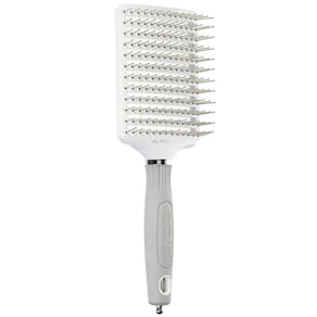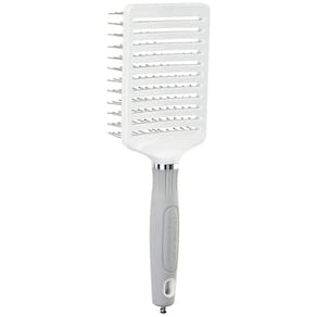 This versatile brush is perfect for detangling, styling, and updos on all hair types. Ion-charged bristles and large vents boost airflow, enhancing blow-drying speed. Is lightweight and comes with a retractable sectioning pick. - Antiestática - Cerdas carregadas de íons e almofada - Pontas esféricas confortáveis