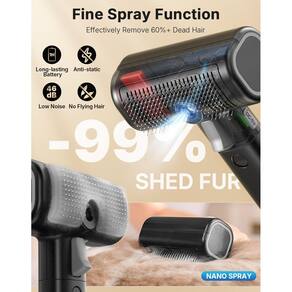 - [Escova a vapor que aceita animais de estimação] A parte da escova a vapor usa cerdas mais grossas com pontas de plástico macio, criando uma sensação confortável ao remover a pele sem machucar seu animal de estimação. Além disso, o spray do pincel sai com um ruído extremamente baixo (cerca de 46 dB), o que significa que seus animais de estimação não terão medo do pincel. As cerdas mais grossas e intensivas também podem capturar com eficácia cabelos flutuantes suficientes. E a função de pulverização pode durar cerca de 1 hora após o carregamento. Cuidado feliz e eficaz para animais de estimação