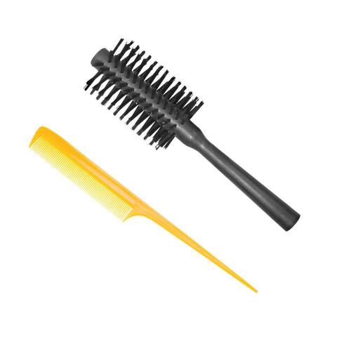 Escova De Cabelo Redonda Com Pente - Cor: Preto