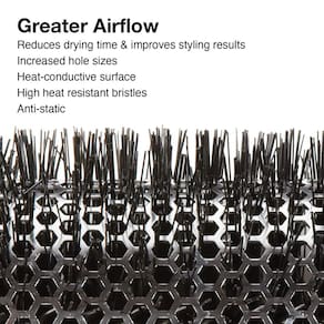 Olivia Garden Escova de cabelo redonda antiestática ProThermal (não elétrica) (2,5 cm) - Design de tampa ventilada – mantém a parte superior da cabeça da escova fresca. Aumenta a ventilação para uma secagem mais rápida. Design de escova mais leve. - Maior fluxo de ar – reduz o tempo de secagem e melhora os resultados de estilo. Tamanhos de furos elevados. Superfície com condução de calor. - Design ergonômico – extremamente leve. Perfeitamente equilibrado para reduzir a fadiga do pulso. Alça sem costura que não desfia. - Cerdas antiestáticas, resistentes ao calor. - Picareta retrátil patenteada. Superfície de alça antiderrapante "Sure Grip" com design funcional de alça de fácil rotação.