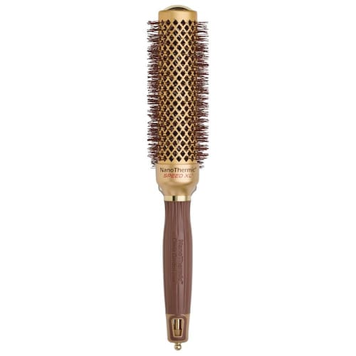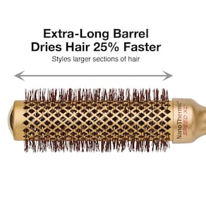 Escova térmica de cano longo com revestimento cerâmico e tecnologia iônica. Aqueça com o calor do secador. Esta escova não é elétrica