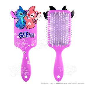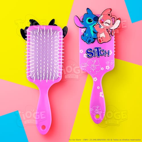 Diferenciais: Desembaraça com facilidade sem danificar os fios. Ideal para crianças com todos os tipos de cabelo. Design exclusivo e ergonômico, com a presença de um aplique divertido do Stitch e da Angel. Durável e resistente, feita com materiais de alta qualidade.