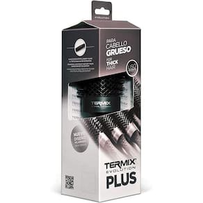 Escova de cabelo Termix Evolution Plus Uma escova de salão projetada para cabelos grossos ou muito cacheados. A quantidade extra grossa e maior de cerdas resulta em uma aderência ideal em cabelos grossos, bem como em cabelos cacheados difíceis. Modelar cabelos grossos é muito mais fácil. ESCOVA DE CABELO EVOLUTION PLUS PARA CABELOS GROSOS: Foi projetada com cerdas ionizadas especiais de alto desempenho para cabelos grossos e difíceis de manusear. e é a única escova que ajuda a controlar e modelar esse tipo de cabelo, graças à densidade de suas fibras de náilon ionizado. Essas cerdas são mais resistentes que as encontradas em outras escovas, reduzindo assim a força de carga que ocorre na secagem desse tipo de cabelo.