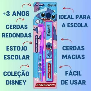 Escova de dente infantil stitch escolar - 3a+ - dentalclean Escova de dente infantil stitch escolar - 3a+ - dentalclean O kit de escova escolar stitch é pura diversão Com escova de cabeça pequena, cerdas macias power tip e cabo premium ergonômico. Recomendada para crianças de 3 a 10 anos, ela é ideal para transformar a higiene oral em uma tarefa divertida para seus filhos e sem para você, afinal, escovar os dentes também pode ser divertido, disponível nas cores rosa e azul. No blister contém 1 escova e 1 estojo escolar. Após a compra envie mensagem solicitando a cor desejada, caso haja em , lhe atenderemos Marca: Não Informado