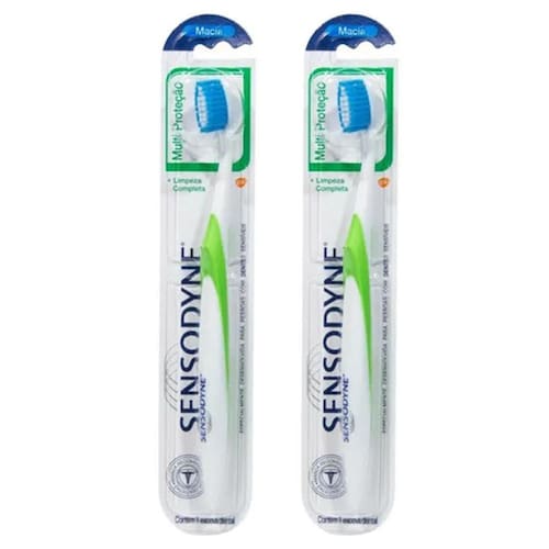 Escova de dente macia multi proteção sensodyne kit x2 Escova macia multi proteção se Cerdas macias. Especialmente desenvolvida para limpeza cuidadosa e suave dos dentes e gengivas. Cabeça oval. Desenvolvida para se adaptar as áreas delicadas dos seus dentes e gengivas fornecendo uma limpeza completa da sua boca. Cabeça pequena, limpeza efetiva até mesmo nas áreas de difícil alcance. Cabo anti derrapante, proporciona uma pegada segura e permite um controle melhor da escovação.