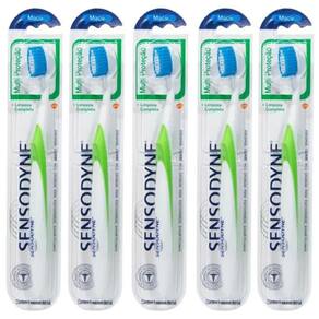 Escova de dente macia multi proteção sensodyne kit x5 Escova macia multi proteção se Cerdas macias. Especialmente desenvolvida para limpeza cuidadosa e suave dos dentes e gengivas. Cabeça oval. Desenvolvida para se adaptar as áreas delicadas dos seus dentes e gengivas fornecendo uma limpeza completa da sua boca. Cabeça pequena, limpeza efetiva até mesmo nas áreas de difícil alcance. Cabo anti derrapante, proporciona uma pegada segura e permite um controle melhor da escovação.